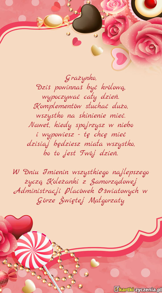 W dniu Twoich imienin życzę Ci wszystkiego, co najpiękniejsze i najlepsze. Niech każdy dzień pr