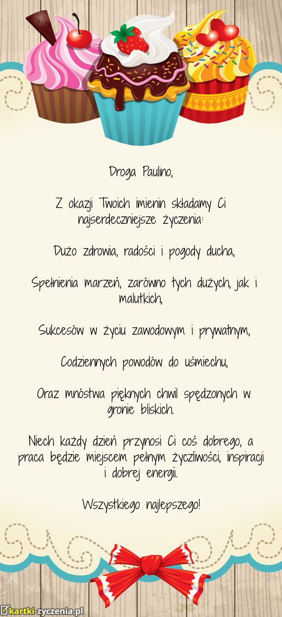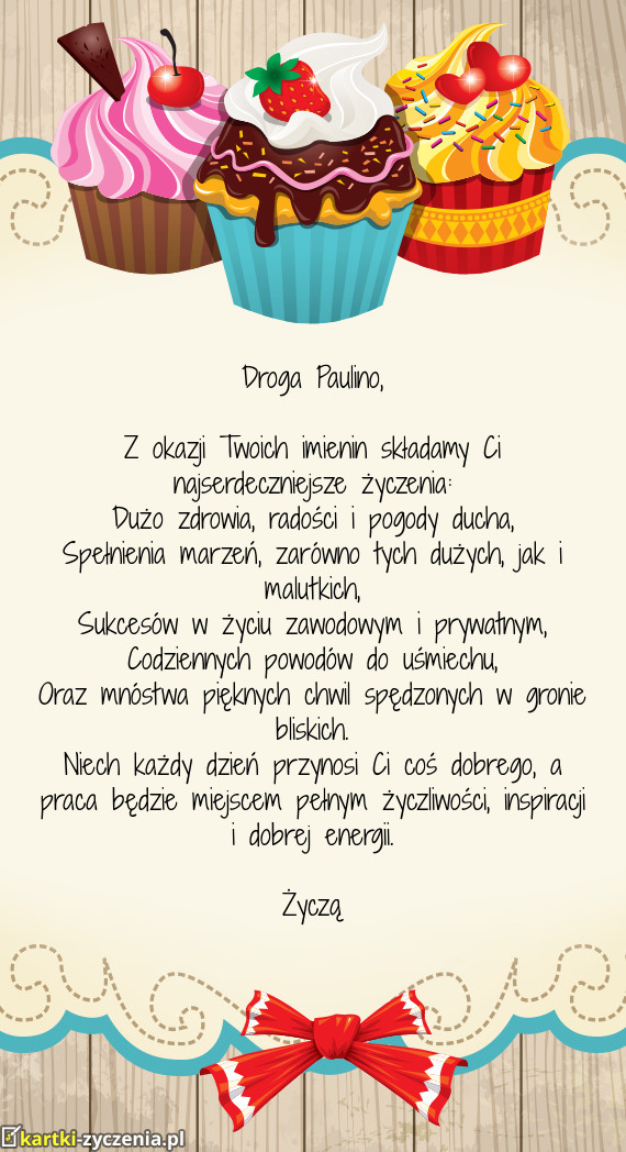 Z okazji Twoich imienin składamy Ci najserdeczniejsze życzenia