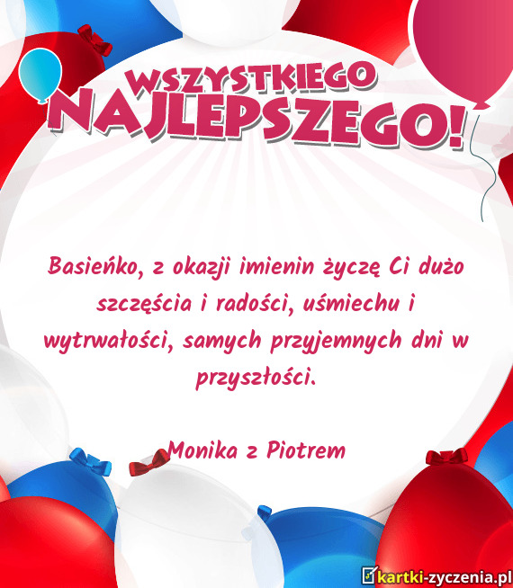 Basiu, w Dniu Twojego Święta życzę zdrowia, dużo okazji do uśmiechu i wszelkiej pomyślności