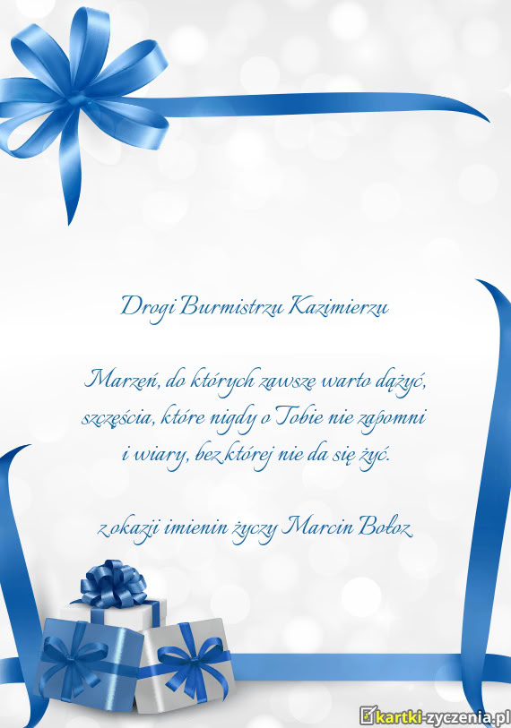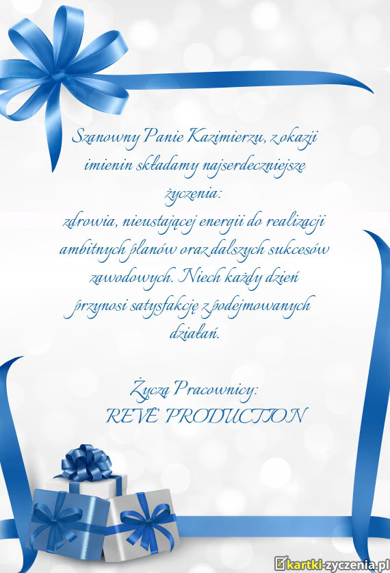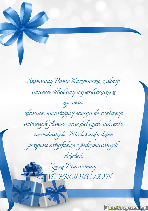 Szanowny Panie Kazimierzu, z okazji imienin składamy najserdeczniejsze życzenia